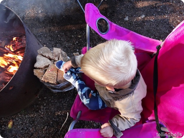 I thought it entirely logical that I should put brand new shoes on Libby, who is just barely managing this whole up right business, while camping.